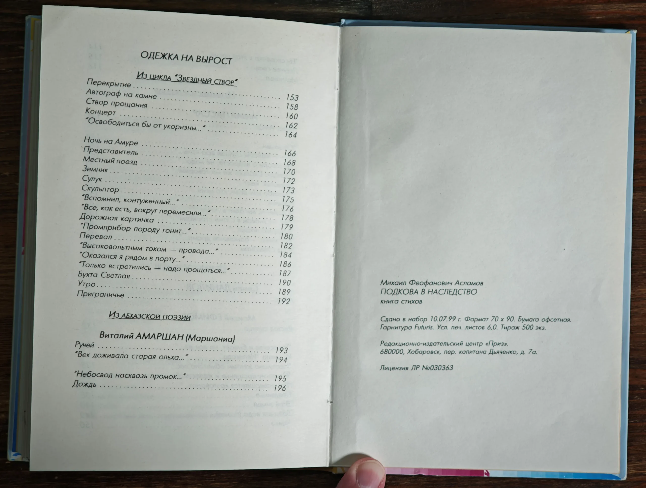 1999 — Подкова в наследство Рецензент и редактор:П.В.ХаловХудожник:С.А.ЧешкинКомп. набор, верстка:Е.И.Переверзев, И.В.Линовицкая Редакционно-издательский центр «Приз»